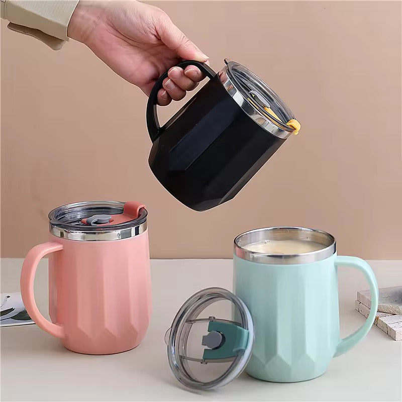 This stylish and compact thermos cup keeps your tea or coffee hot for a long time.